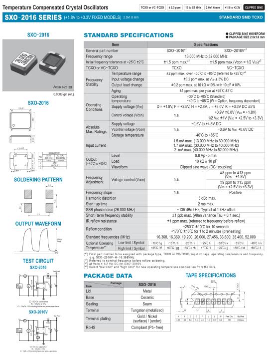 SMI晶振,SXO-2016晶振,TCXO振蕩器