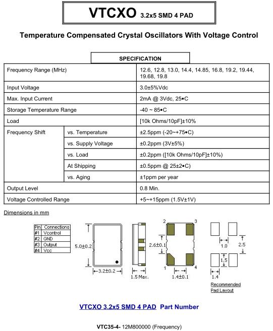 | Voltage Controlled Range | +5~+15ppm (1.5V±1V) | |