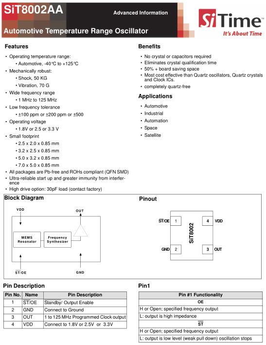 SiTime晶振,SiT8002AA晶振,SiT8002AA-14-33E-123.12345T晶振