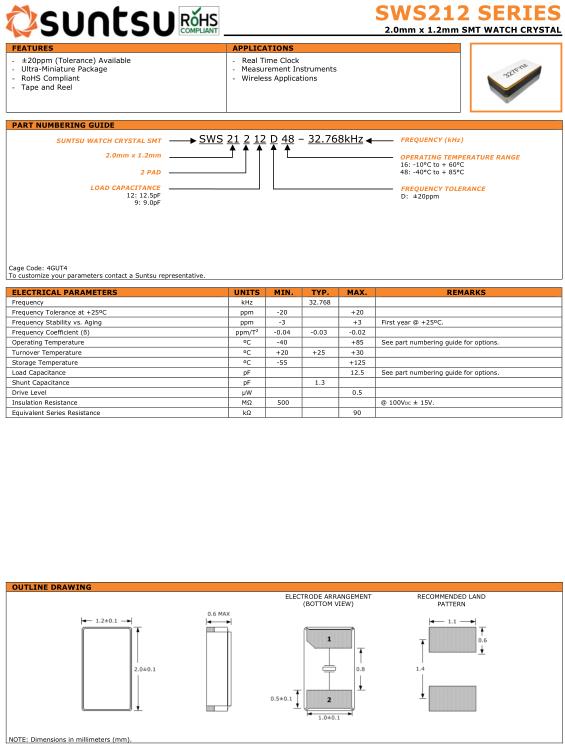 | Suntsu晶振規格 | 單位 | SWS212晶振頻率范圍 | 石英晶振基本條件 |