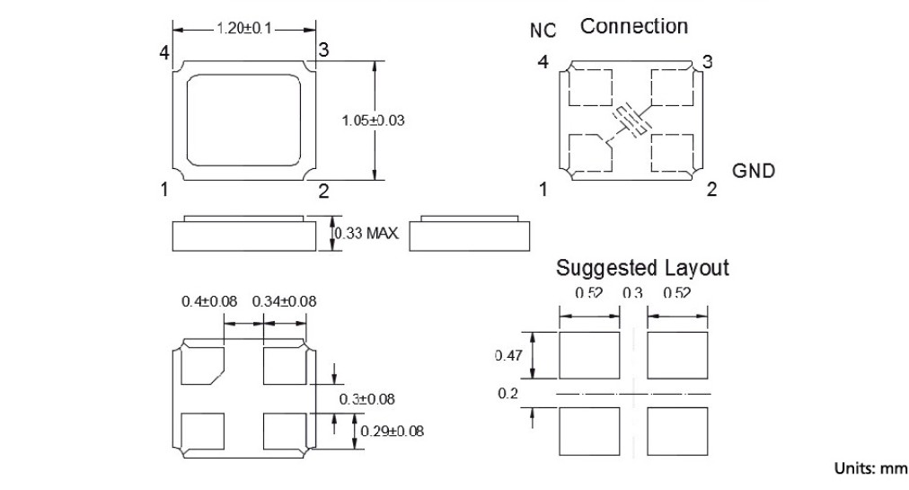 - 尺寸:1.2x1.0x0.3mm