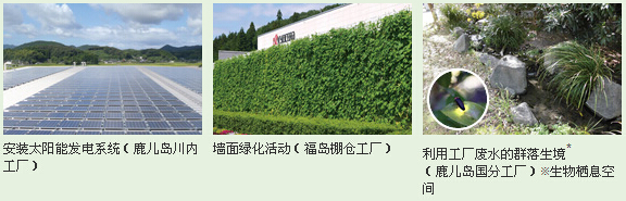 京瓷集團全體員工都積極地投身環?;顒?希望能夠在兼顧環保性和經濟性的同時,實現可持續發展.尤其是在節能、溫室效應對策方面,投入節能設備、安裝太陽能發電系統、實施墻面綠化等開展了一系列節能活動.此外,還開展了保護生物多樣性等活動.京瓷為區域發展做出的貢獻受到了高度評價,連續5年榮獲日本環境省頒發的“防止全球變暖活動環境大臣表彰獎”,成為獲獎次數最多的企業.