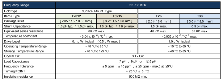 - 頻率:32.768KHZ