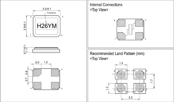 | Size/Dimension尺寸 | 3225mm | 安裝方式 Installation: | Surfacemount |